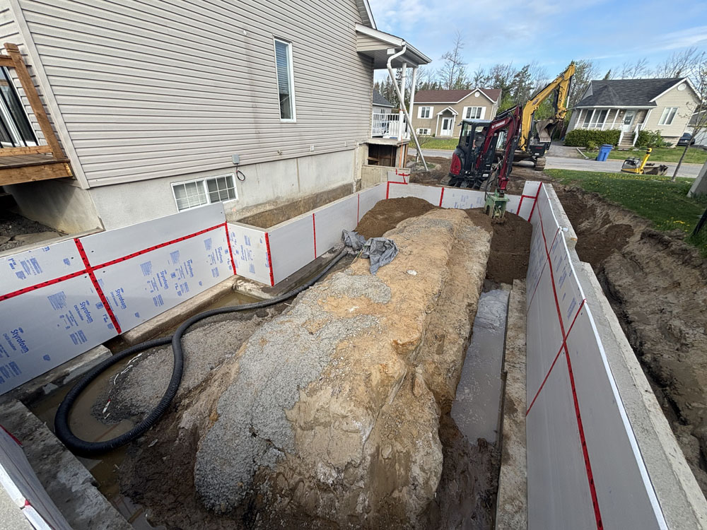 Inspection, installation et réparation de drain français avec imperméabilisation de fondation | Mini-Excavation Joliette